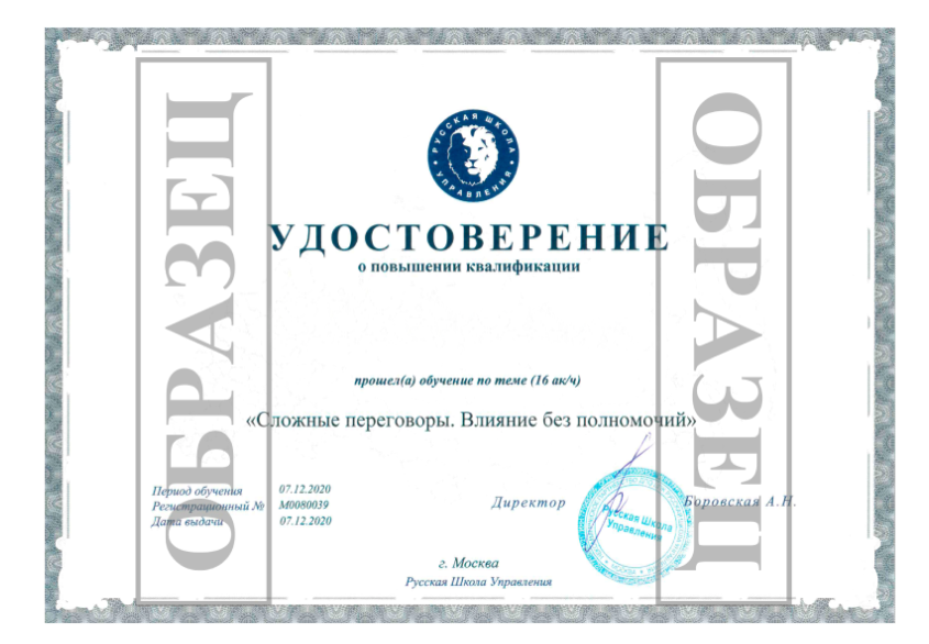 Вы получите Удостоверение о повышении квалификации установленного государством образца